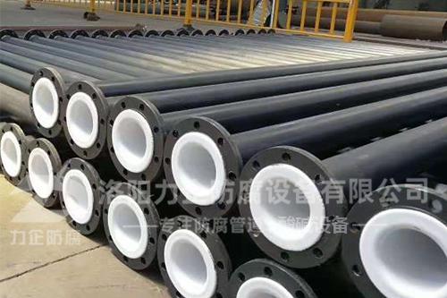 钢衬塑衬四氟防腐管道。钢衬四氟管道又称四氟管道、四氟复合管道,是由优质聚四氟乙烯制作而成,原材料聚四氟乙烯采用模压、注塑等工艺制作而成,是一种具有优异耐高温、耐腐蚀、耐酸、耐碱、脱硫脱硝、化工污水等特性的管道。